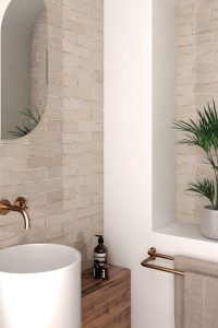 - Balance with neutrals: Too much colour can overwhelm. Use warm tiles as accents with calming beige or cream tones.